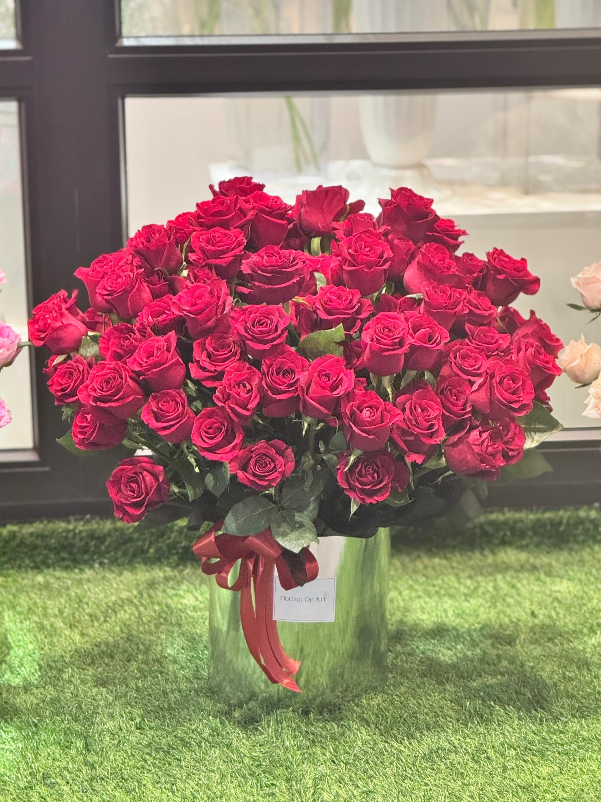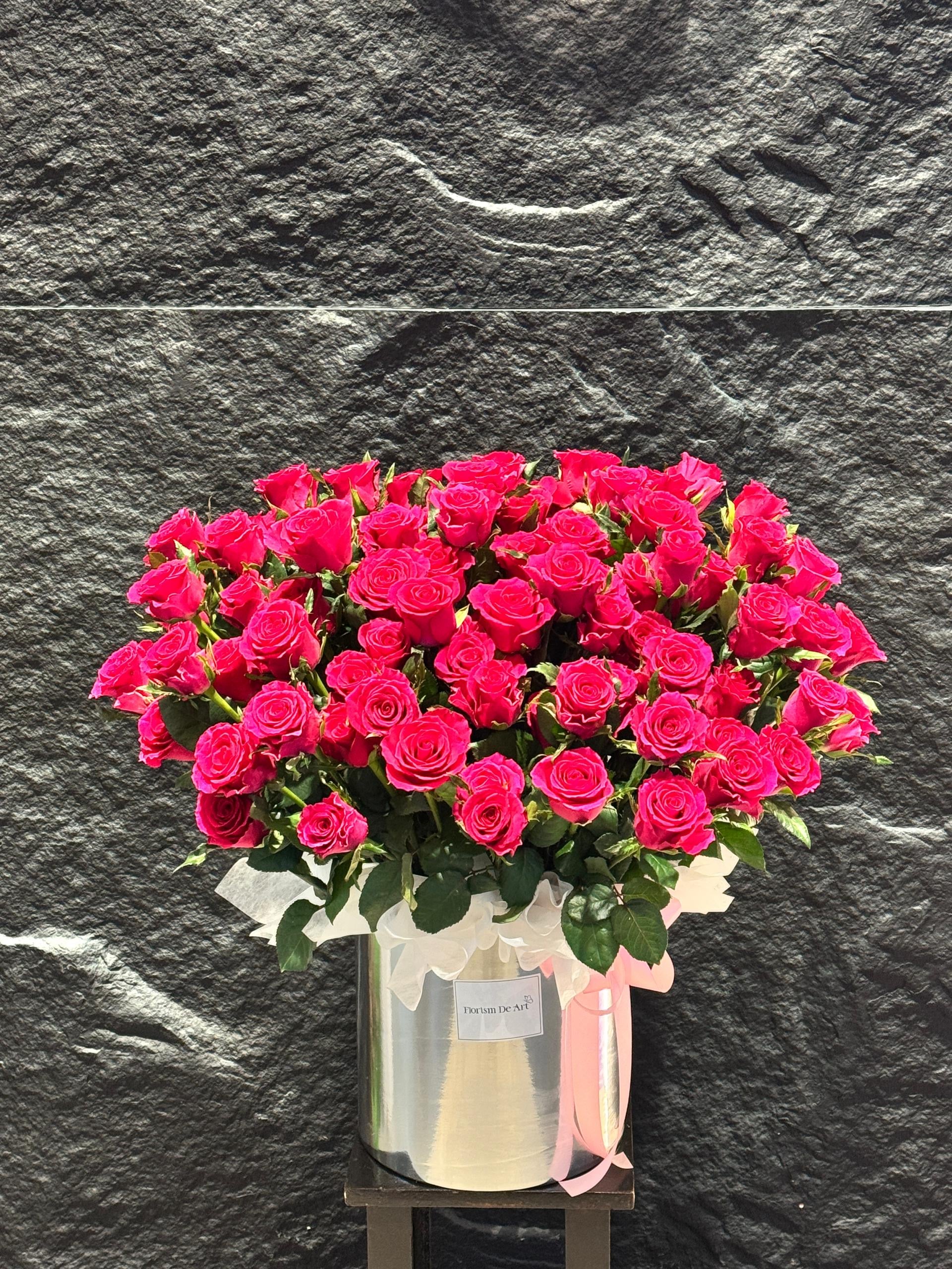 A breathtaking display of 99 roses, beautifully arranged to express the deepest emotions of love and admiration. Each rose represents a promise, a cherished moment, and a lasting connection. Elegant and timeless, this luxurious bouquet speaks the language of endless affection — a true symbol of eternal devotion and heartfelt sincerity.