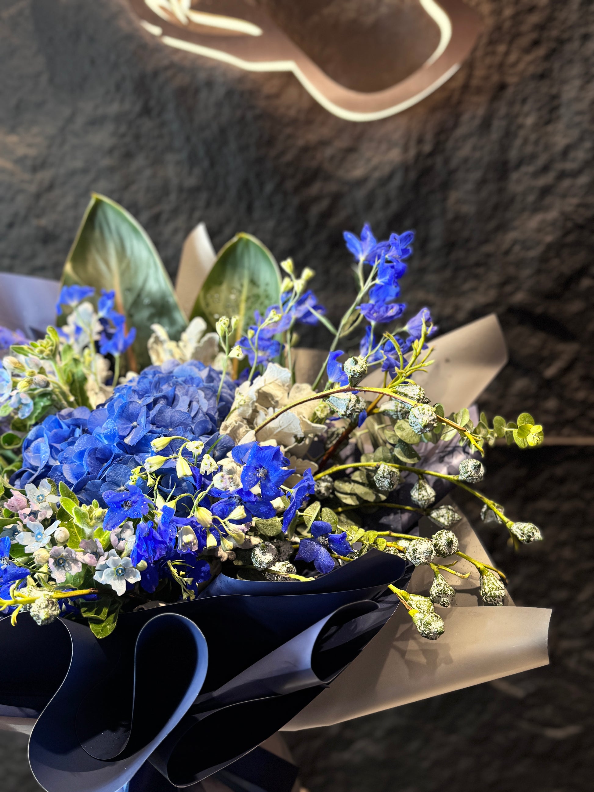Calm, graceful, and deeply symbolic, Perpaduan embodies the strength found in unity. The soothing blue tones represent harmony, trust, and stability, while the refined arrangement conveys a sense of balance and togetherness.