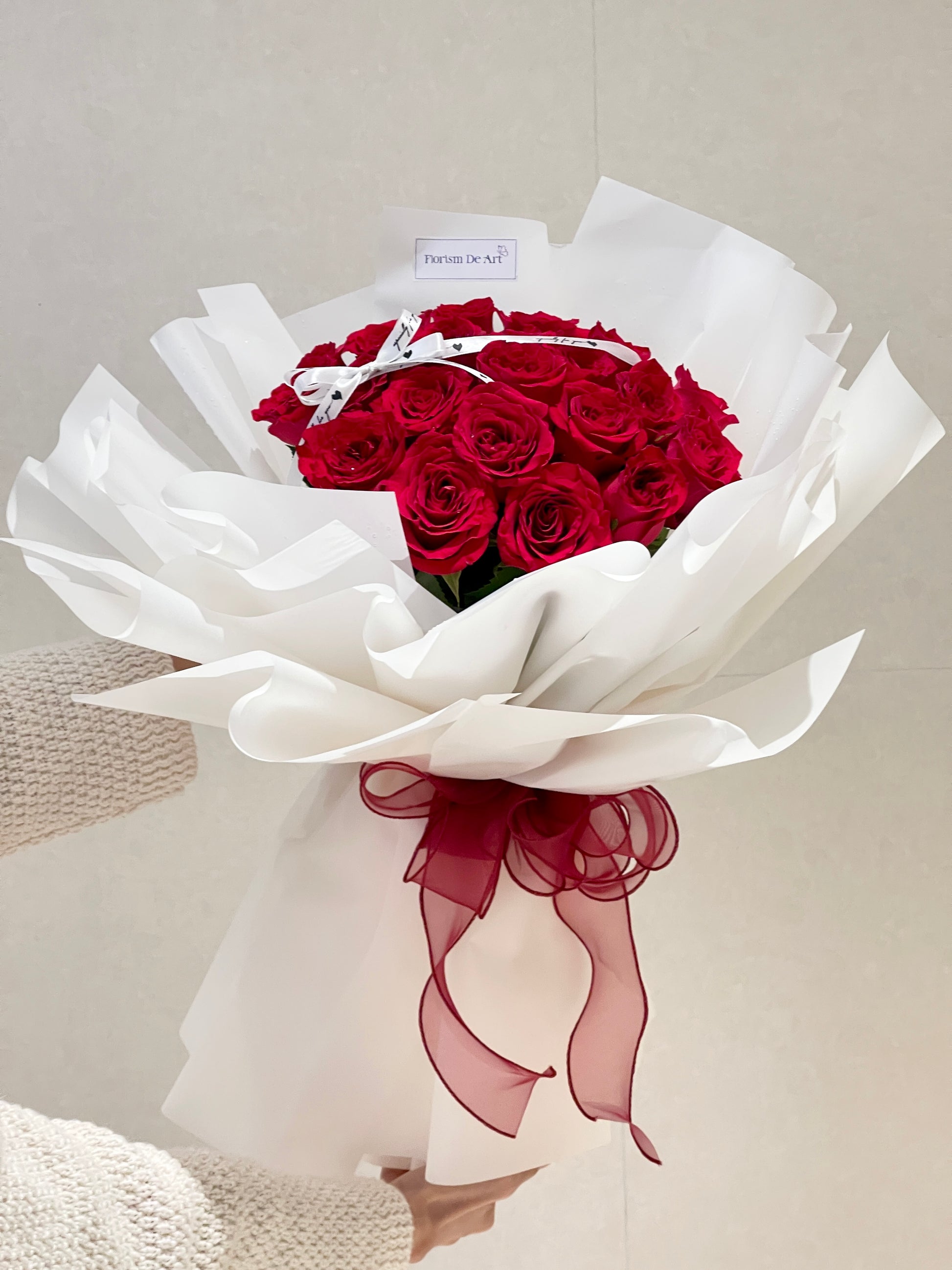Each rose is carefully selected for its rich color and flawless bloom, symbolizing deep passion and genuine care. Finished with our signature Fleurs De Art touch, Sincere Love makes every moment unforgettable.