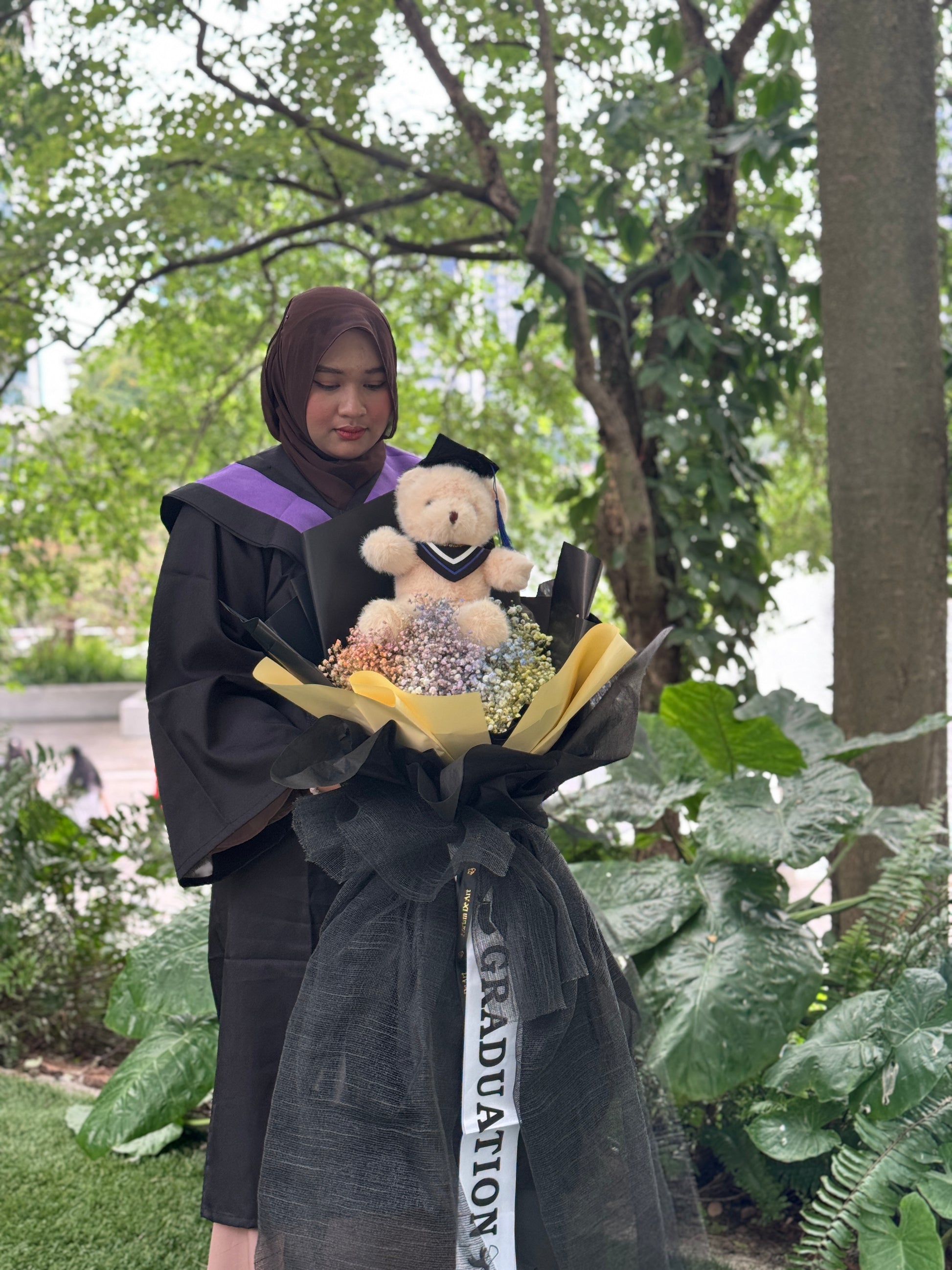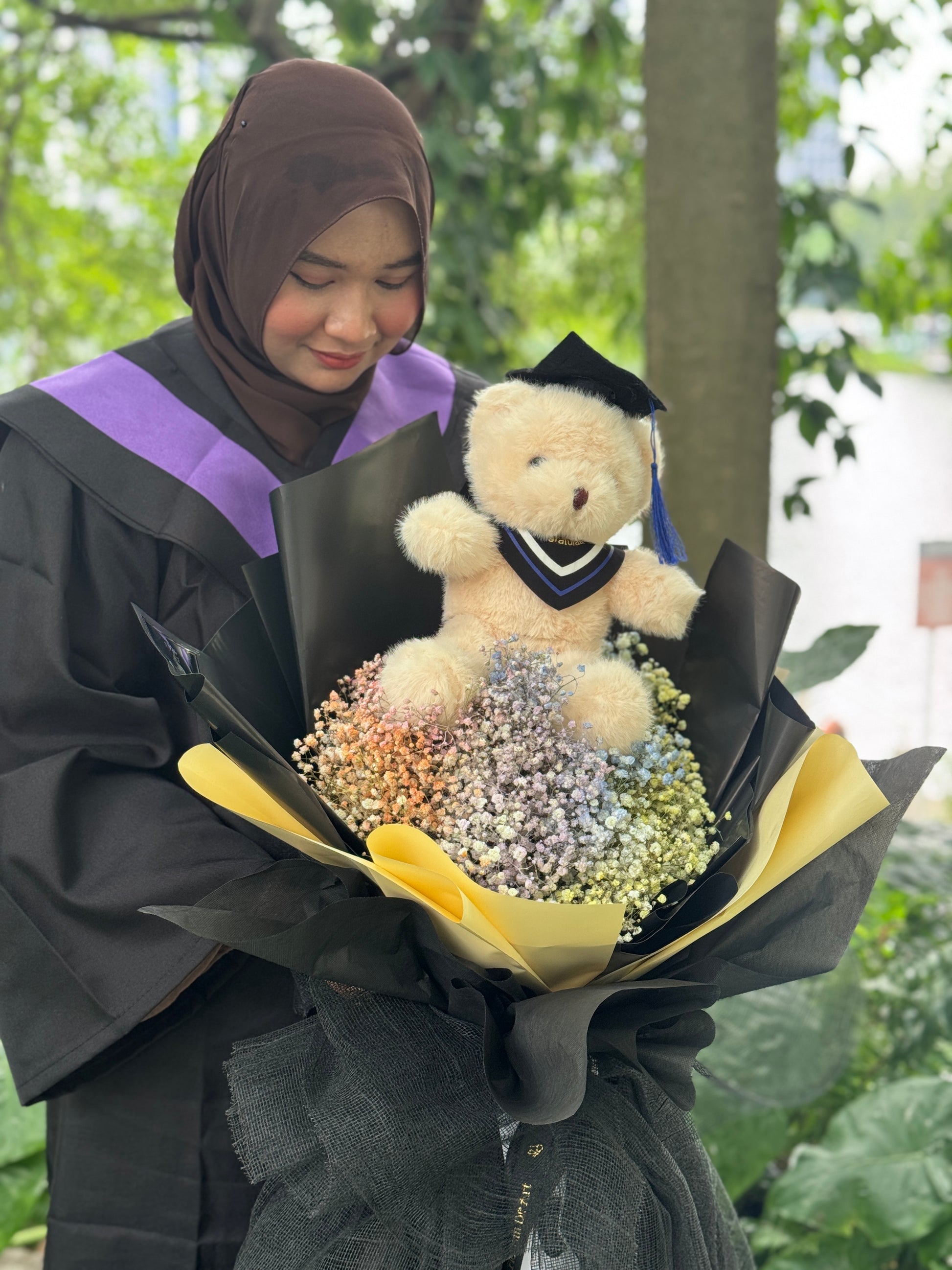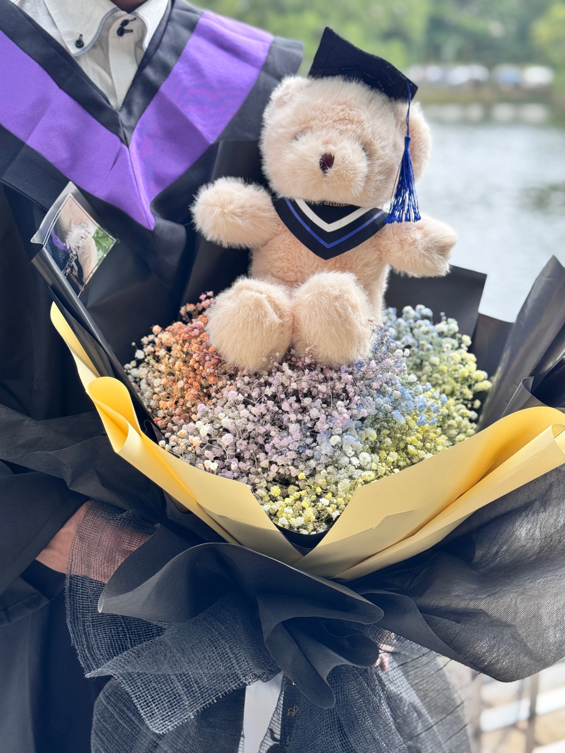 This special graduation bouquet features a charming teddy in full graduation attire, nestled among delicate blooms, and wrapped with elegance. Victory Bloom is more than a bouquet – it’s a symbol of hard work, dedication, and the sweet reward of accomplishment. 💐✨